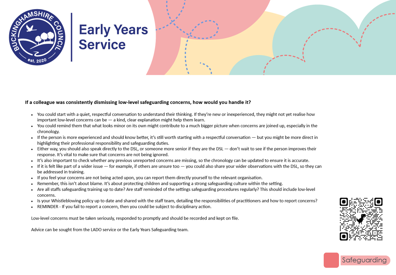 Week 1 - If a colleague was consistently dismissing low-level safeguarding concerns, how would you handle it?